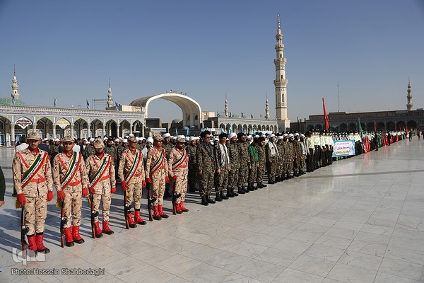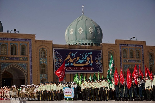 صبح امروز پنجشنبه 14 مهرماه و همزمان با نهم ربیع الاول سالروز آغاز امامت حضرت مهدی(عج)، صبحگاه مشترک نیروهای نظامی و بسیجی در مسجد مقدس جمکران برای تجدید عهد سربازی امام زمان(عج) برگزار شد. در این مراسم سردار حسین اشتری فرمانده نیروی انتظامی کشور و حجت الاسلام محمدحسن رحیمیان به ایراد سخن پرداختند.