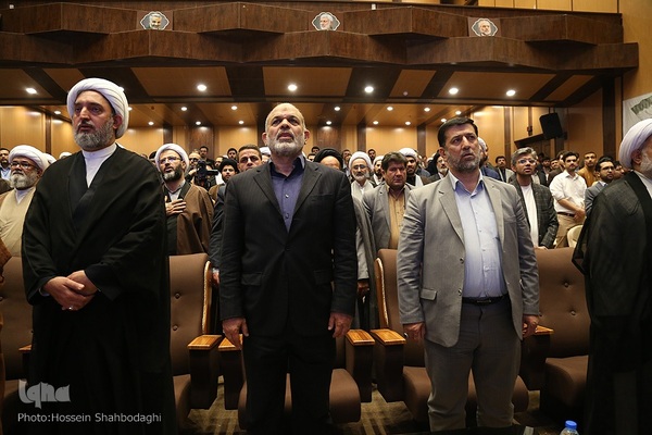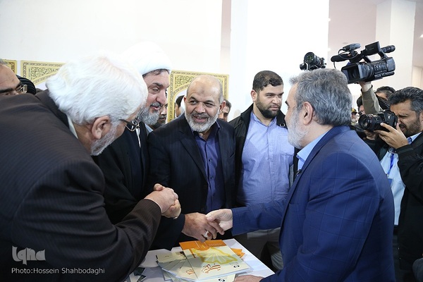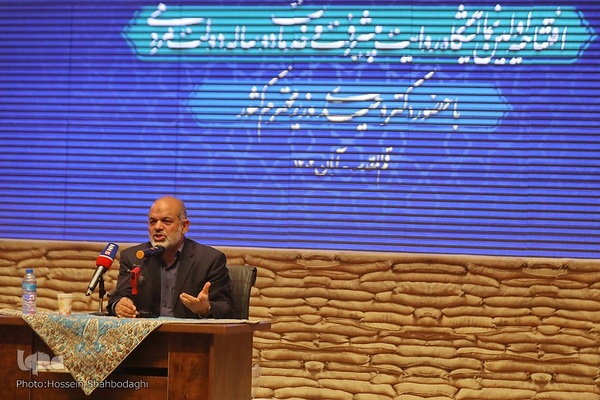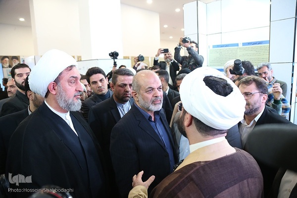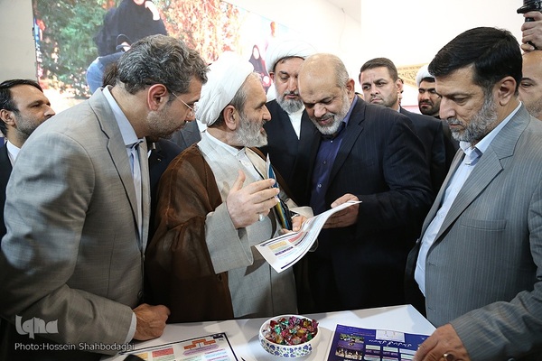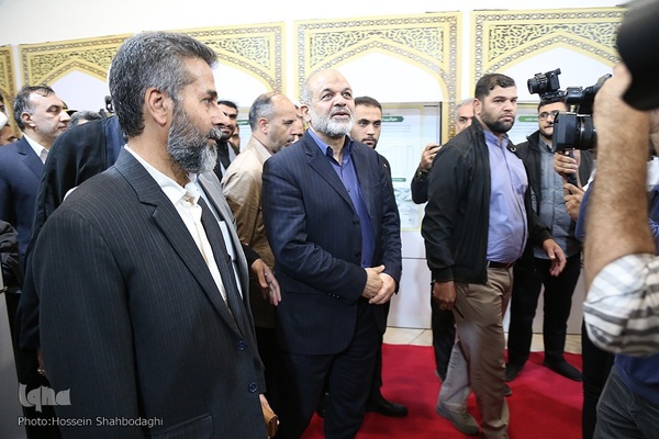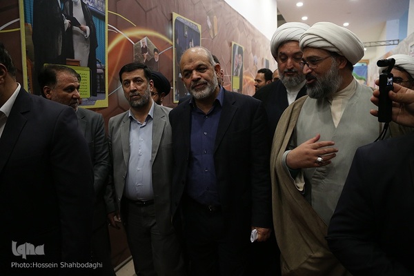 مراسم افتتاحیه نمایشگاه روایت پیشرفت که با محوریت معرفی خدمات دو ساله دولت مردمی در باغ موزه دفاع مقدس استان قم با حضور احمد وحیدی وزیر کشور برگزار شد.
