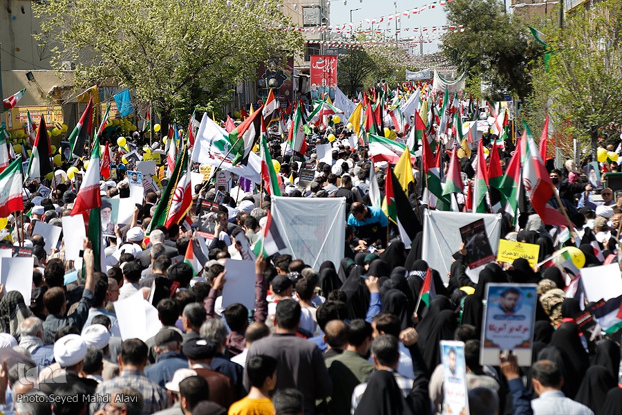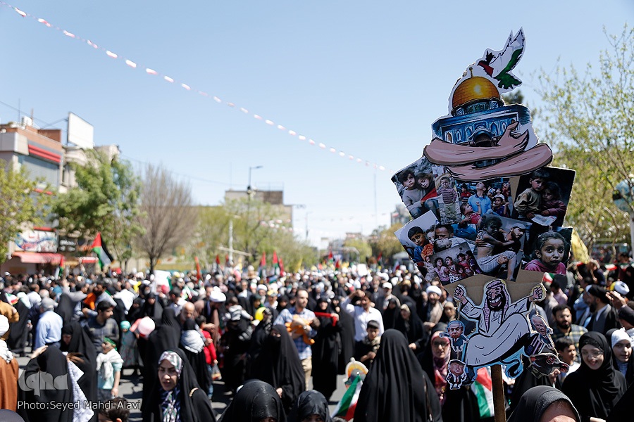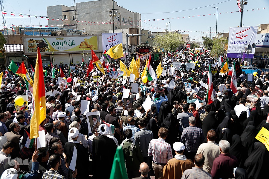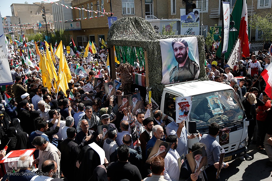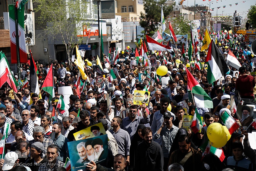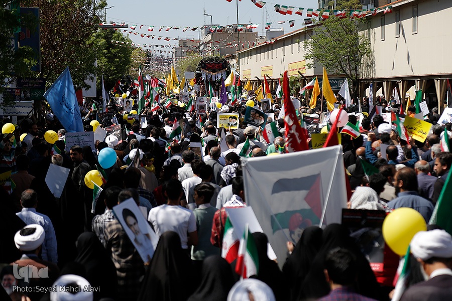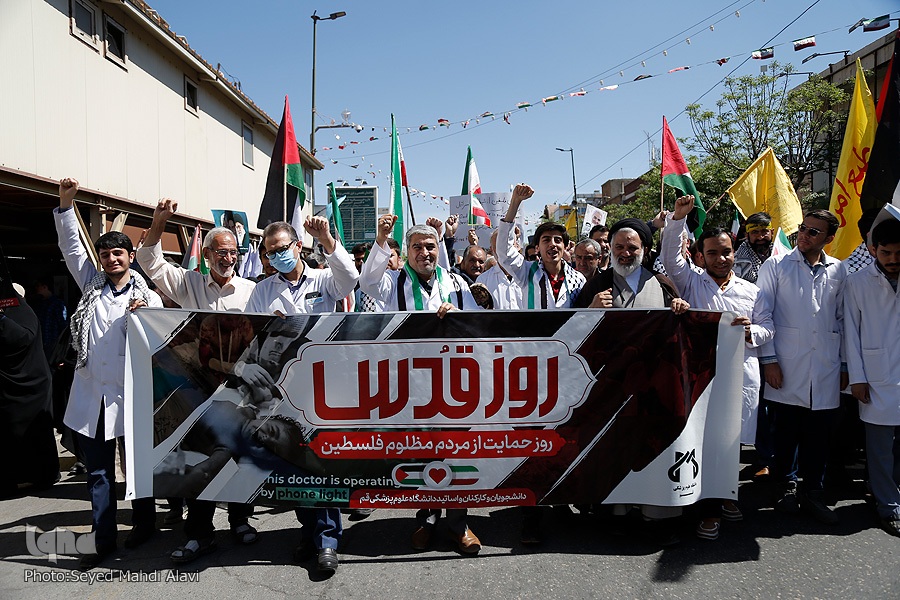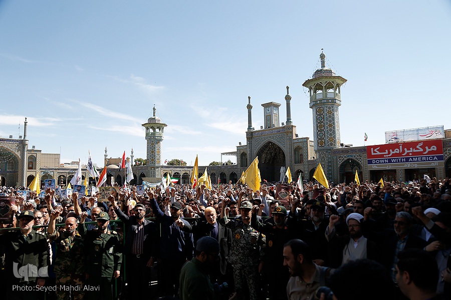 مردم قم در روز جهانی قدس از حرم حضرت معصومه(س) تا مصلی قدس راهپیمایی کرده و ضمن حمایت خود از مظلومان فلسطین، از جنایات دشمن صهیونیستی اعلام انزجار کردند.