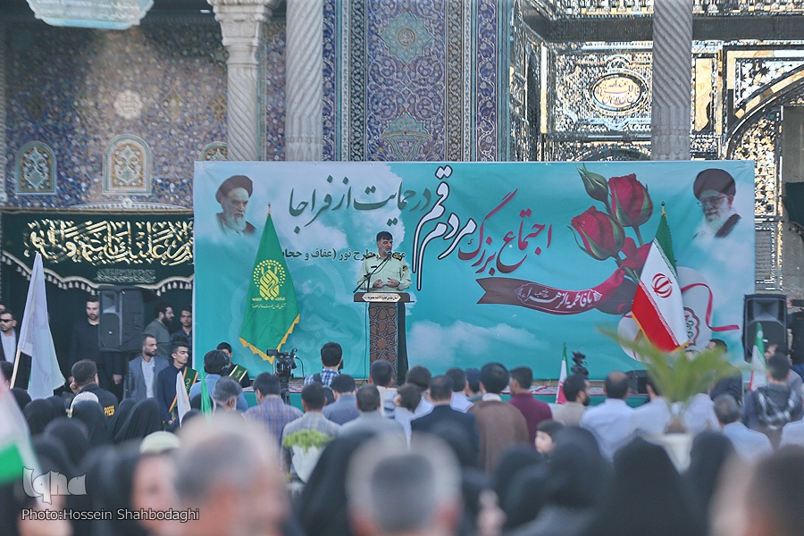 اجتماع بزرگ مردم قم در حمایت از فراجا به خاطر اجرای طرح نور با سخنرانی سردار رادان فرمانده انتظامی کشور و حجت الاسلام والمسلمین ماندگاری در صحن امام رضا علیه السلام حرم مطهر بانوی کرامت برگزار شد.