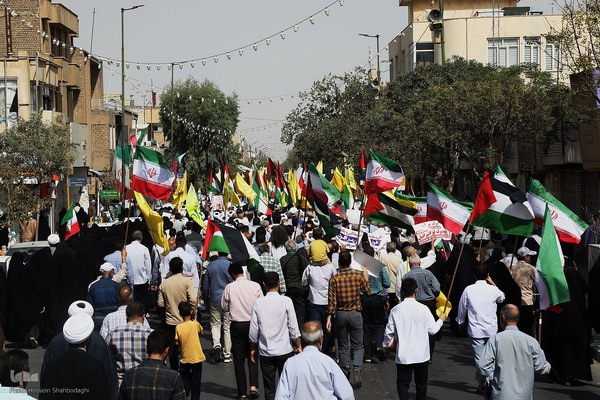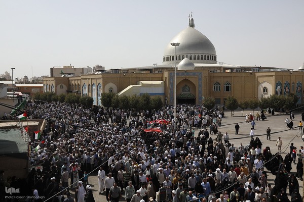 مردم شریف و ولایتمدار قم در پی محکومیت جنایات جانکاه رژیم منحوس صهیونیستی و موالی آن ظهر جمعه پس از آیین عبادی و سیاسی نمازجمعه این هفته شهر مقدس قم از مصلی این شهر تا حرم حضرت معصومه (س) راهپیمایی کردند.