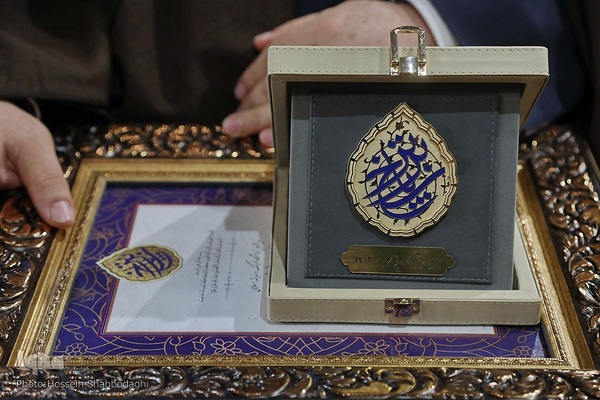 اهدای نشان خادمی مسجد جمکران به قاری برتر مسابقات بینالمللی قرآن روسیه