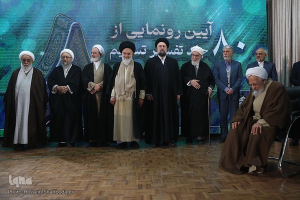 آیین رونمایی از تفسیر ۸۰ جلدی تسنیم به کوشش آیتالله جوادی آملی با حضور جمعی از مسئولان ملی و چهرههای حوزوی امروز ۶ اسفند، در مدرسه عالی دارالشفا قم برگزار شد.