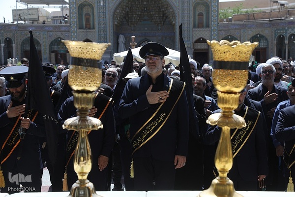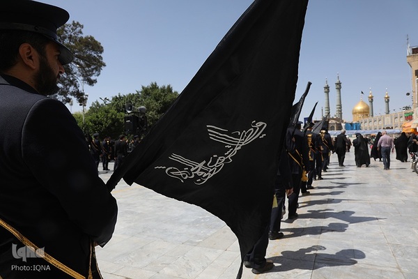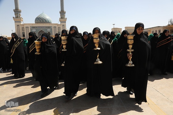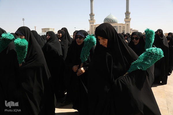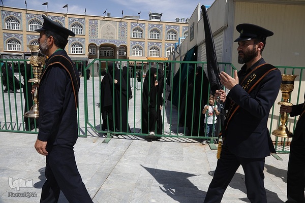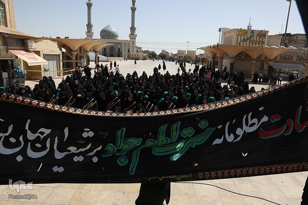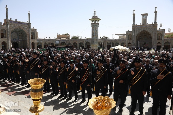 دسته عزای خادمان و زائران حرم مطهر بانوی کرامت در سوگ امام جواد علیه السلام امروز از مسجد امام حسن عسکری علیه السلام به سمت حرم مطهر بانوی کرامت به راه افتاد و مراسم عزاداری با مداحی حسن اسداللهی در صحن امام رضا علیه السلام با حضور پرشور مردم برپا شد.
