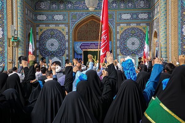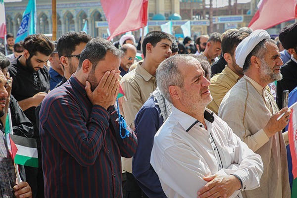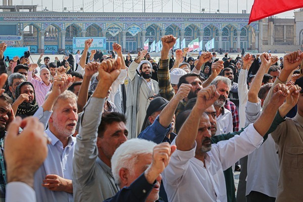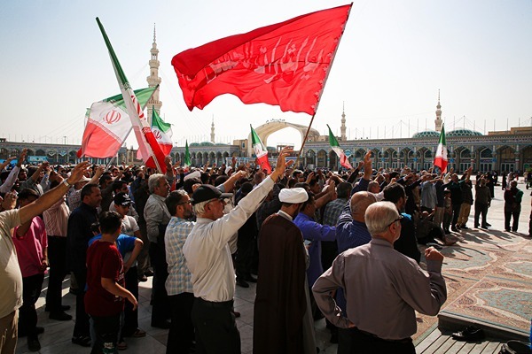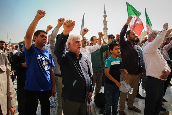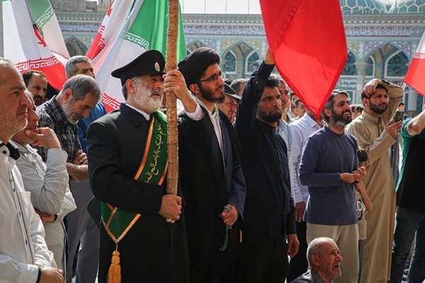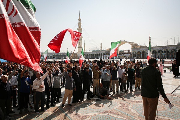 حضور گسترده مردم ولایتمدار قم، صبح امروز جمعه ۲۳ خردادماه در آستان مقدس مسجد جمکران در محکومیت جنایات رژیم منحوس صهیونیستی که به شهادت جمعی از هموطنان، دانشمندان و فرماندهان ارشد نظامی کشورمان شد