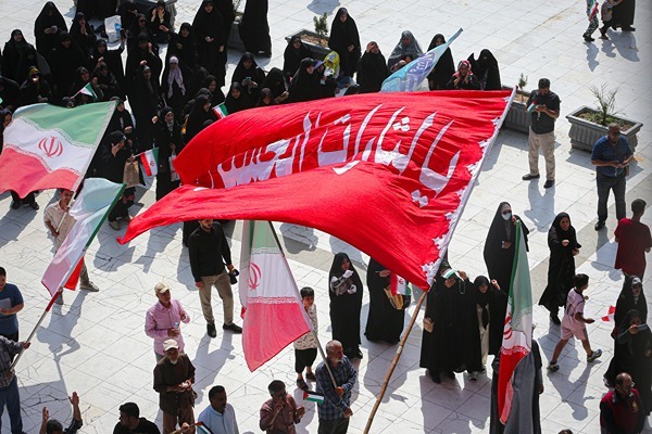 عکس | طواف پیکر شهدای گمنام در حرم بانوی کرامت