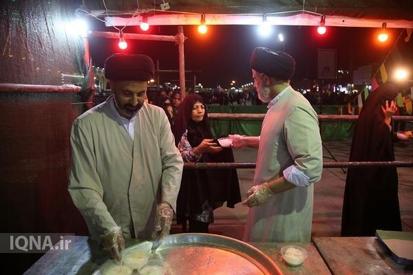 عکس | پذیرایی مواکب حرم مطهر بانوی کرامت از زائران در شب عید غدیر
