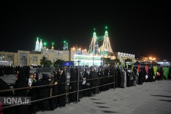 ایستگاههای صلواتی مستقر در حرم مطهر حضرت فاطمه معصومه(س) به پذیرایی زائران در شب عید غدیر پرداختند.