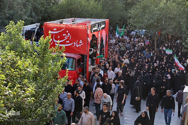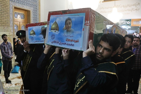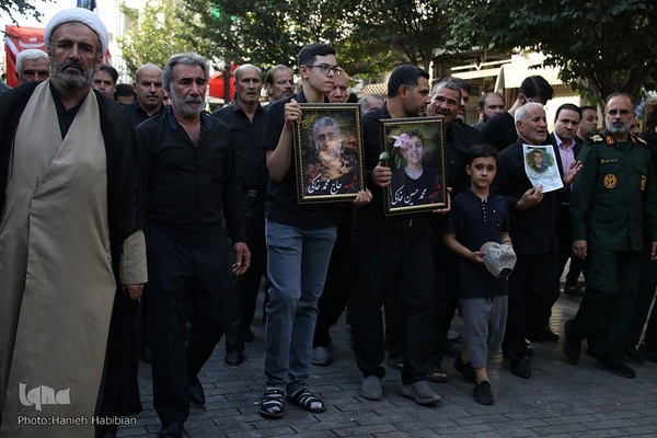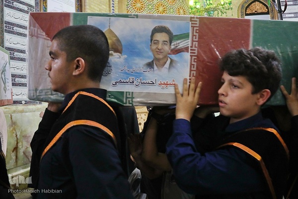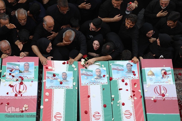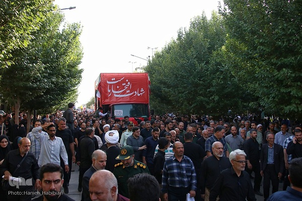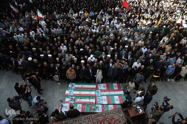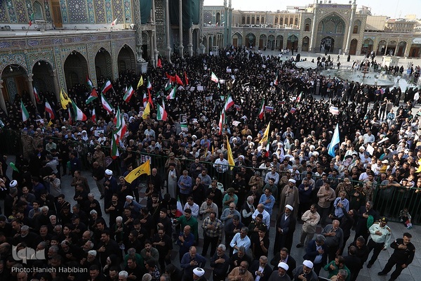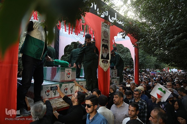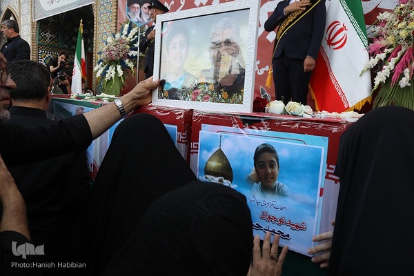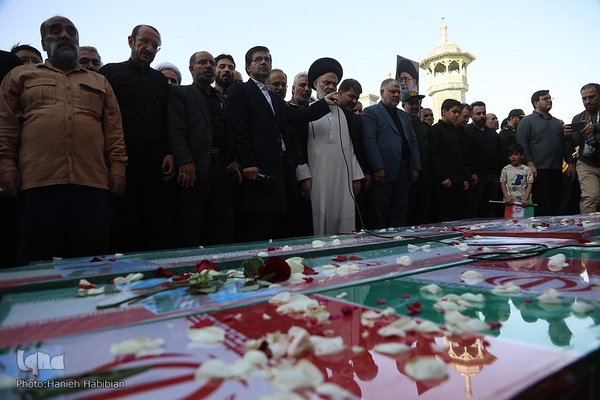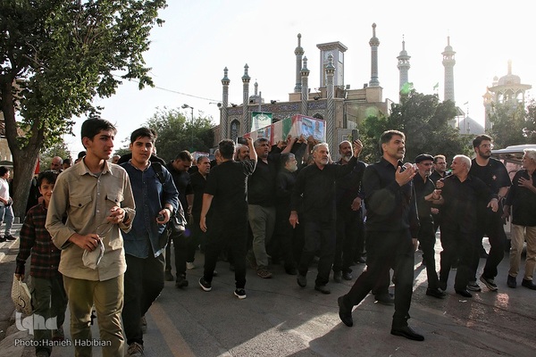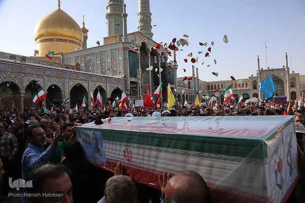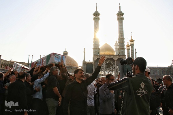 مراسم تشییع پیکر ۸ شهید حمله جنایتکارانه رژیم صهیونیستی به قم، سه شنبه، ۳ تیر، از حرم حضرت فاطمه معصومه(س) به سمت گلزار شهدای علی بن جعفر(ع) برگزار شد.