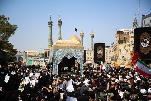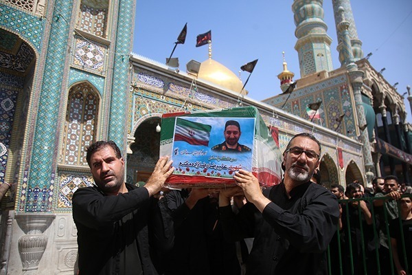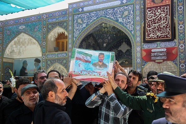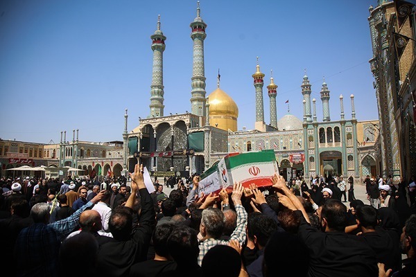 آیین تشییع و تدفین پیکر مطهر سرهنگ پاسدار علیرضا رضازاده مقدم و سروان پاسدار علی علیرضایی دو شهید تجاوزات اخیر رژیم منحوس صهیونیستی به ایران، صبح امروز، ۲۴ تیرماه با حضور پرشور مردم قم در حرم مطهر حضرت فاطمه معصومه(س) برگزار شد.