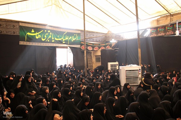 عزاداری زائران حرم بانوی کرامت در سوگ مادر سادات