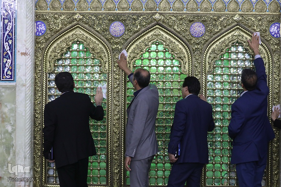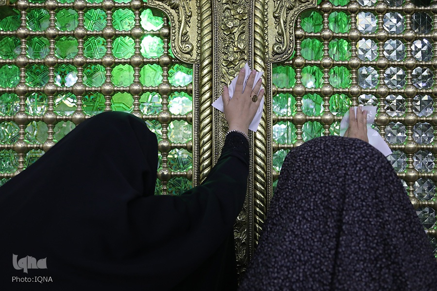 غبارروبی حرم مطهر حضرت فاطمه معصومه(س) توسط جهادگران جهاددانشگاهی