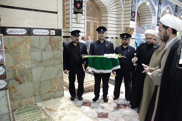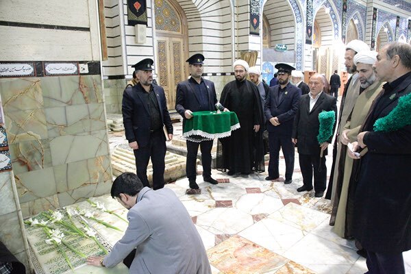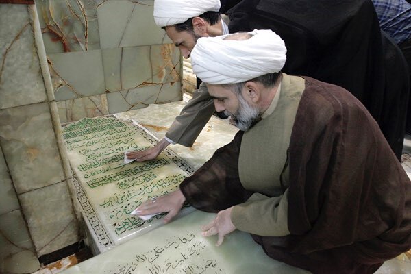 عکس | غبارروبی مزار علامه طباطبایی توسط خادمان حرم بانوی کرامت