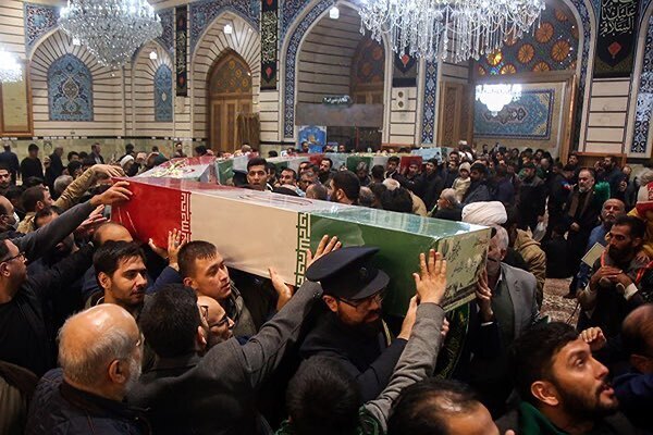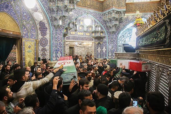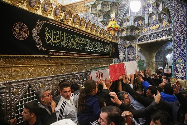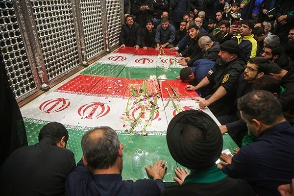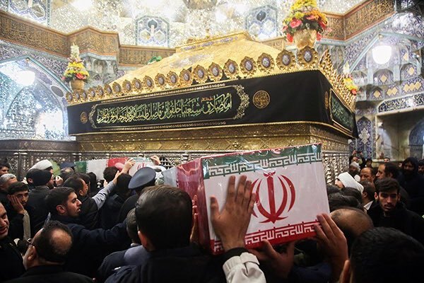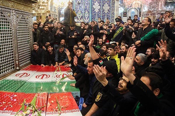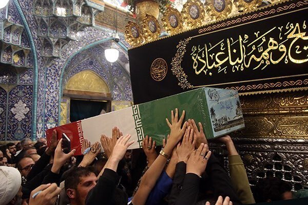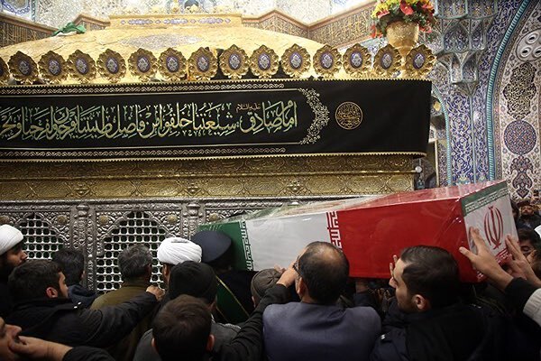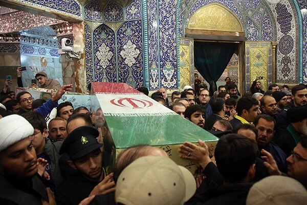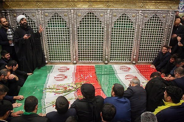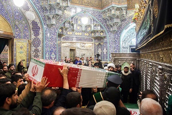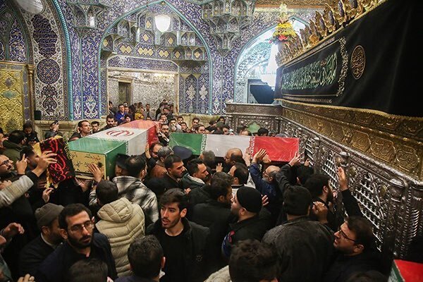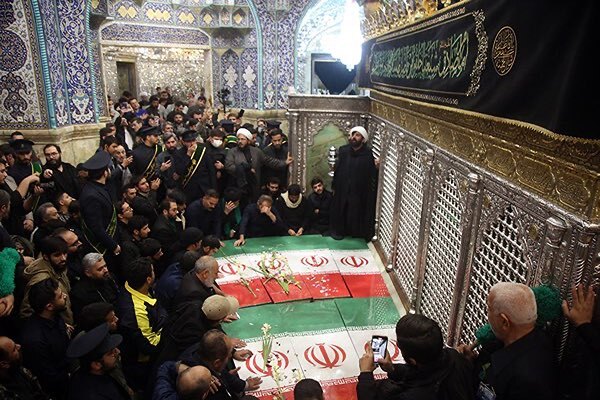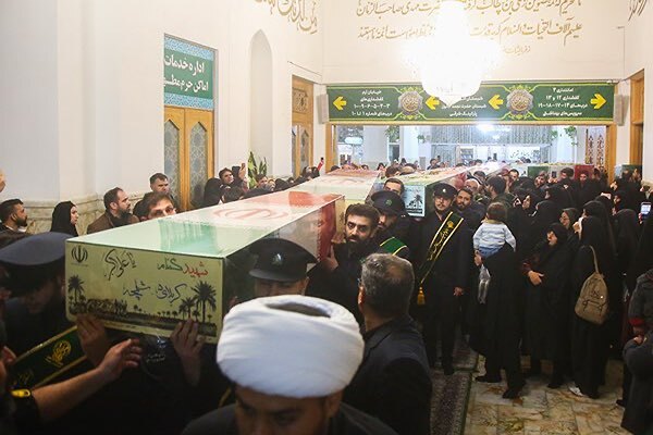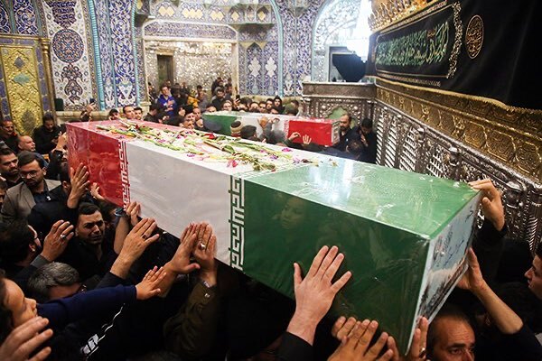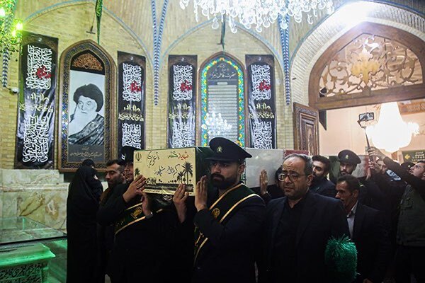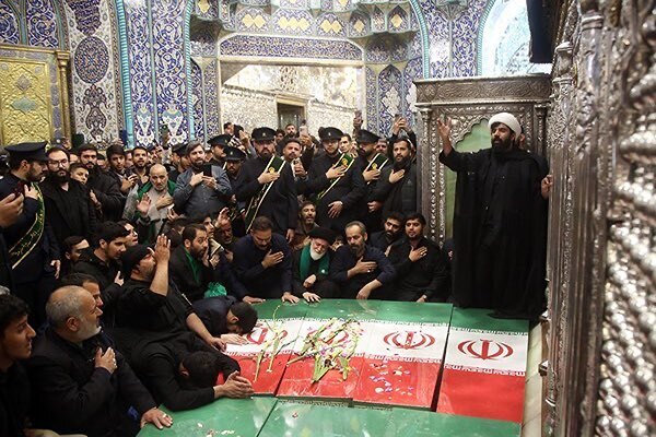 عکس | طواف پیکر شهدای گمنام در حرم بانوی کرامت