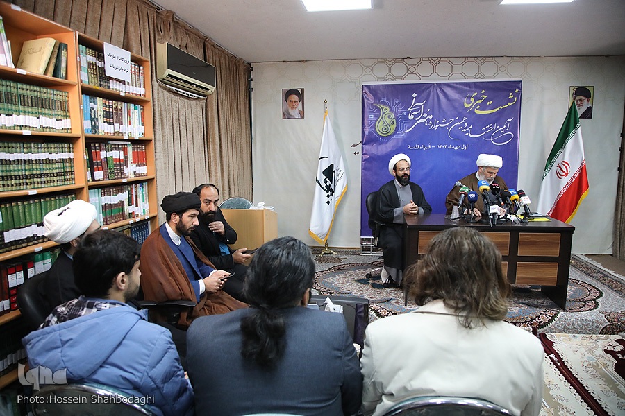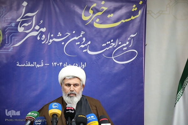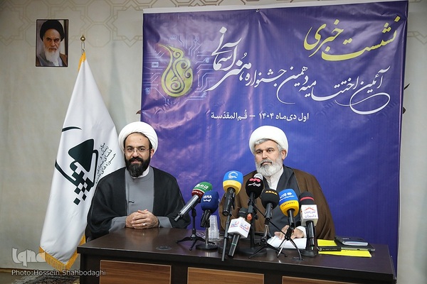 نشست خبری آئین اختتامیه دهمین جشنواره هنرهای آسمانی عصر امروز دوشنبه (۱ دی ۱۴۰۴) با حضور حجت‌الاسلام والمسلمین رفیعی معاون تبلیغ و امور فرهنگی حوزه‌های علمیه و جمعی از اهالی رسانه در سالن جلسات علامه طباطبایی مرکز رسانه و فضای مجازی حوزه برگزار شد.